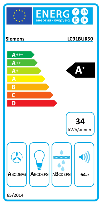 Energieeffizienzklasse ... auf einer Skala von A+++ (höchste Effizienz) bis D (geringste Effizienz)A+