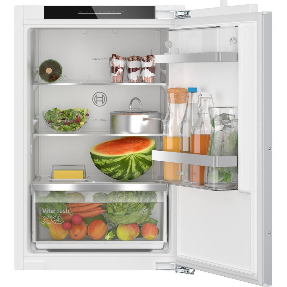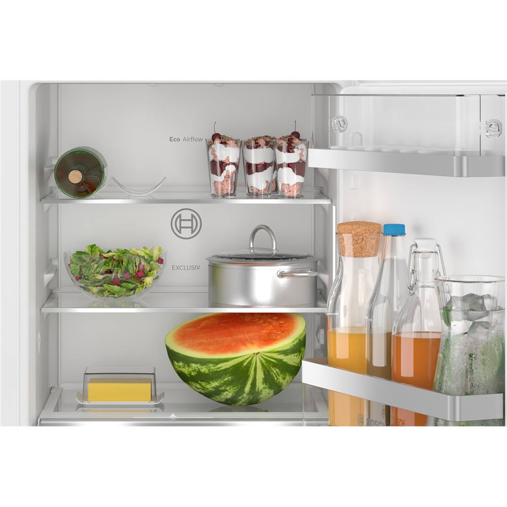 Der geräumige Einbaukühlschrank mit VitaFresh XXL-Schublade für Obst und Gemüse und Ablagen aus Sicherheitsglas sorgt für eine optimale Lagerung der Lebensmittel.
