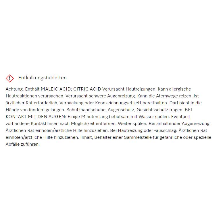 Produktbezeichnung: GP DC CX 0061 T - Entkalkungstabletten, 6 StückEntkalkungstabletten, 6 Stück für Kaffeevollautomat, Dampfgarer, FashionMaster, Backofen/Herd mit Klimagaren.PDF: Datenblatt.pdfPreis inkl. gesetzl. MwSt., ggf. zzgl. VersandkostenArtikel-Merkmale:Gründliche Entfernung von Ablagerungen und VerkalkungenHöchst effektive und dabei materialschonende EntkalkungAbgestimmte Formulierung — Spezielle Miele RezepturKeine Rückstände von Chemie nach EntkalkungBeste Pflege für viele Jahre VerlässlichkeitDieser Artikel ist im Geschäft bestellbar. Stellen Sie gerne hier Ihre Fragen zum Artikel oder rufen Sie uns an.Menge in STCK -+In den WarenkorbArtikel nicht bestellbar×Serviceauswahl für Ihr ProduktLaden, bitte warten...Das Modal wurde geladenFehler beim Laden des Modals!Bitte warten...Unsere Vor-Ort-Services für Ihre Lieferadresse aktivieren: Wenn Ihre Lieferadresse in unserer Serviceregion liegt, stehen Ihnen unsere Vor-Ort-Leistungen durch unser eigenes Fachpersonal am Verwendungsort zur Verfügung. Durch Eingabe Ihrer PLZ können Sie diese Service Verfügbarkeit für Ihre Lieferadresse prüfen.Postleitzahl eingeben:Serviceregion prüfenSie befinden sich in der Serviceregion!Sie befinden sich außerhalb der Serviceregion!Bitte beachten Sie, dass, wenn Sie bereits einen Artikel im Warenkorb haben, dieser Ihre Lieferoptionen beeinflussen könnte.Der Artikel wird in den Warenkorb gelegt...Möchten Sie den Artikel in den Warenkorb legen und weiter einkaufen oder direkt in den Warenkorb gehen?MerkenVergleichenProduktanfrageHaben Sie Fragen zu diesem Produkt?Frage stellenSie haben noch Fragen oder wünschen eine persönliche Beratung vor Ort?Wir von KARL Hausgeräte und Küchenmöbel helfen Ihnen gerne weiter!Jetzt Kontakt aufnehmenHighlightsProduktsteckbriefTechn. DatenServiceleistungHighlightsMiele ReinigungsprodukteImmer perfekte ErgebnisseDie speziell für Miele Geräte entwickelten Produkte garantieren hygienisch einwandfreie Ergebnisse. Mögliche Ablagerungen werden restlos entfernt. So bleibt die Leistungsfähigkeit Ihres Gerätes erhalten.ProduktsteckbriefImmer perfekte ErgebnisseDie eigens auf die Miele Geräte abgestimmten Rezepturen stehen für zuverlässig perfekte Ergebnisse.Techn. DatenMengenpreis_Ers_Preiseinheit1 Mengenpreis_Umrechnungsfaktor6 MarkennameMiele Werks-Nr.10178330 ServiceleistungService, den wir Ihnen gerne bieten.Als Fachhändler endet unsere Leistung nicht mit dem Bezahlen - wir lassen Sie auch beim Onlineeinkauf nicht im Stich. Denn wir montieren und installieren Ihre Großgeräte auf Wunsch und erklären Ihnen dann ausführlich, wie Sie diese jetzt optimal nutzen können. So können Sie an Ihrer Neuanschaffung schon nach kurzer Zeit Freude haben.Diesen Service bieten wir Ihnen in einem Umkreis von 30 km rund um 53359 Rheinbach. Die Preise für Montagearbeiten berechen sich nach Aufwand - hier erstellen wir Ihnen gern auf Wunsch ein individuelles Angebot.Für eine Vielzahl von Service- und Montageleistungen bieten wir Ihnen, abhängig vom Gerätetyp, vorkalkulierte Preise, die Sie sich schon bei der Onlinebestellung sichern können. Diese Leistungen finden Sie in unserem Onlineshop direkt am Gerät.Beratung und Kundenservice rund um Hausgeräte und Elektrogeräte.Guter Service ist bei KARL Hausgeräte und Küchenmöbel eine Selbstverständlichkeit. Bei uns stehen Sie und Ihre Bedürfnisse im Vordergrund. Wir nehmen uns die Zeit, um Ihre Fragen zu beantworten und Sie passend zu beraten: wir sind für Sie da, wenn Sie uns brauchen. Vom ersten Beratungsgespräch bis zur Reparatur – ein Anruf oder eine E-Mail genügen und einer unserer Spezialisten steht Ihnen helfend zur Seite.Serviceleistungen ansehenFachberatung in der AusstellungLieferung und MontageReparaturservice und KundendienstAltgeräte-Mitnahme und -EntsorgungIn den Warenkorb×Frage zum Artikel:MIELE - GP DC CX 0061 TArt der KontaktaufnahmeTelefonMailNameVornameStraßePLZOrt*E-Mail*TelefonMIELE - GP DC CX 0061 TAnfrageIch habe die Datenschutzbestimmungen zur Kenntnis genommen* Wir erheben, verarbeiten und nutzen die von Ihnen angegebenen personenbezogenen Daten nur zum Zwecke der Abwicklung der Kontaktanfrage.Captcha**PflichtfelderSenden19,95 EUR
