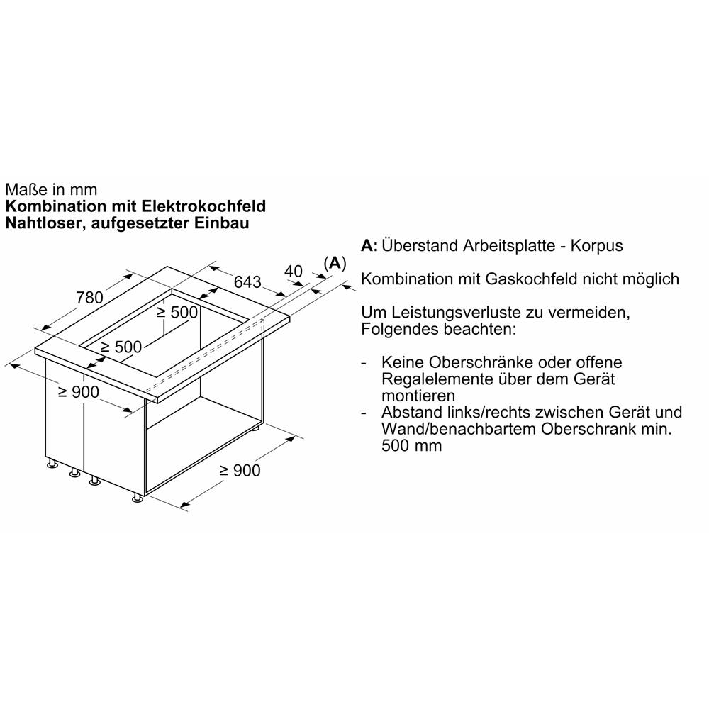 - Eine Kombination mit Gaskochfeldern ist nicht möglich.