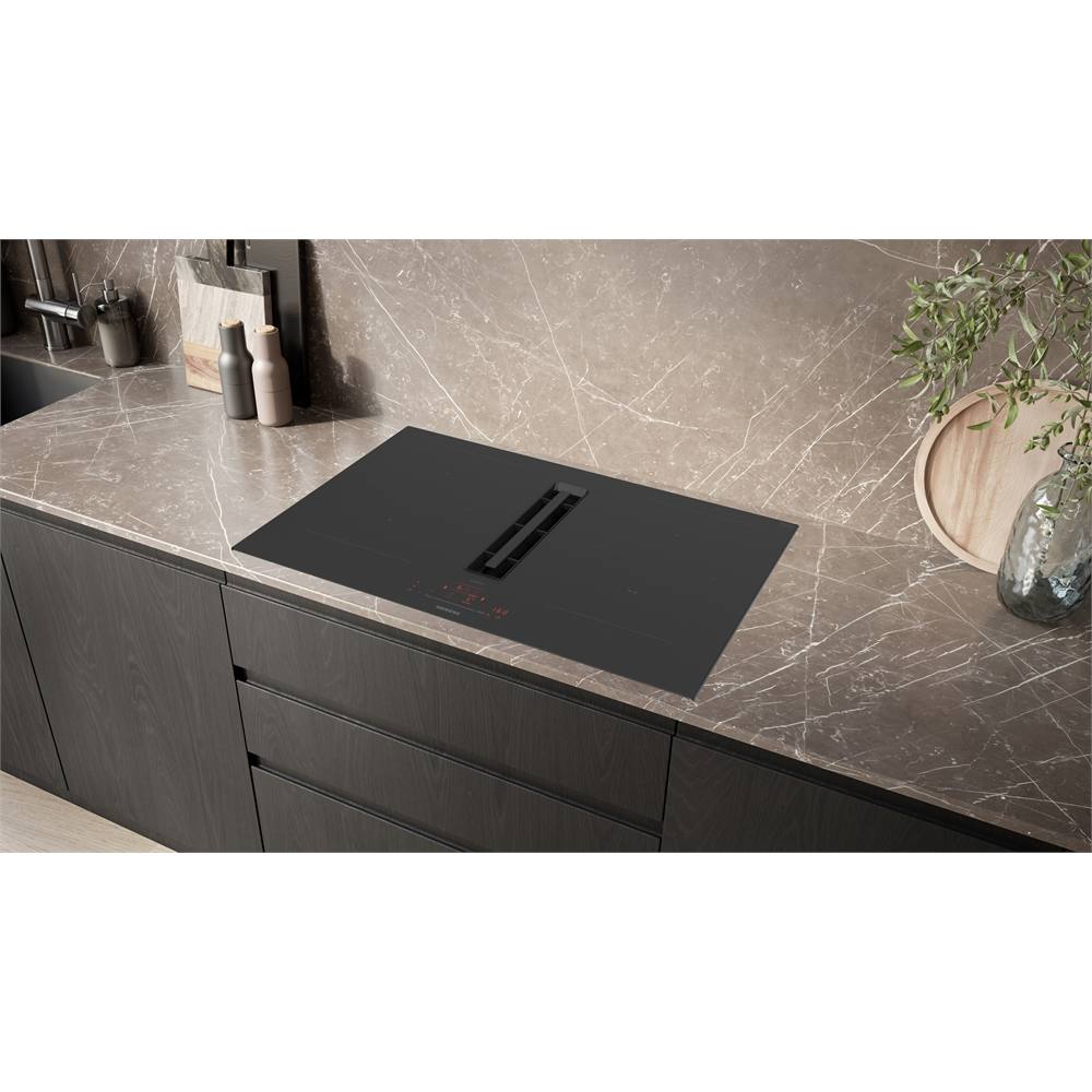 - Induktionskochfeld mit vollintegriertem, leistungsstarkem Downdraft-Abzugsmodul.