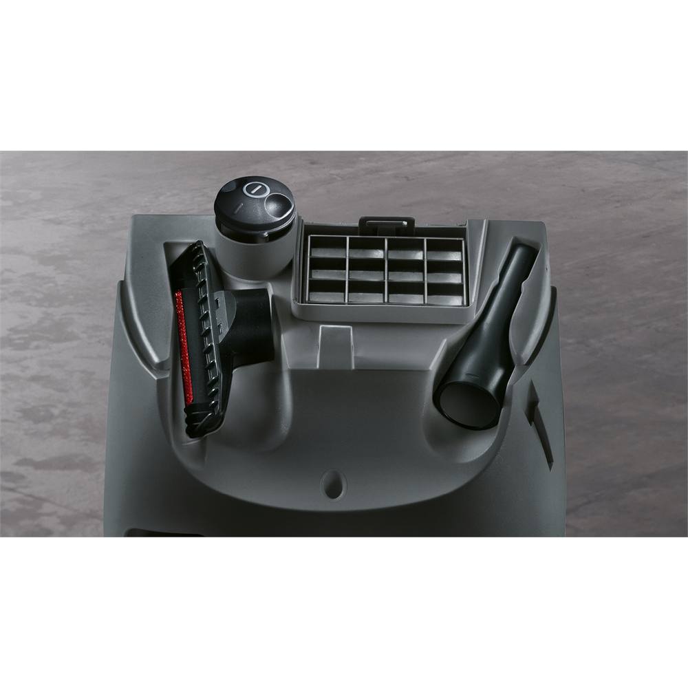 • Integriertes Zubehör: Fugen- und Polsterdüse sind komfortabel in das Gerät integriert.