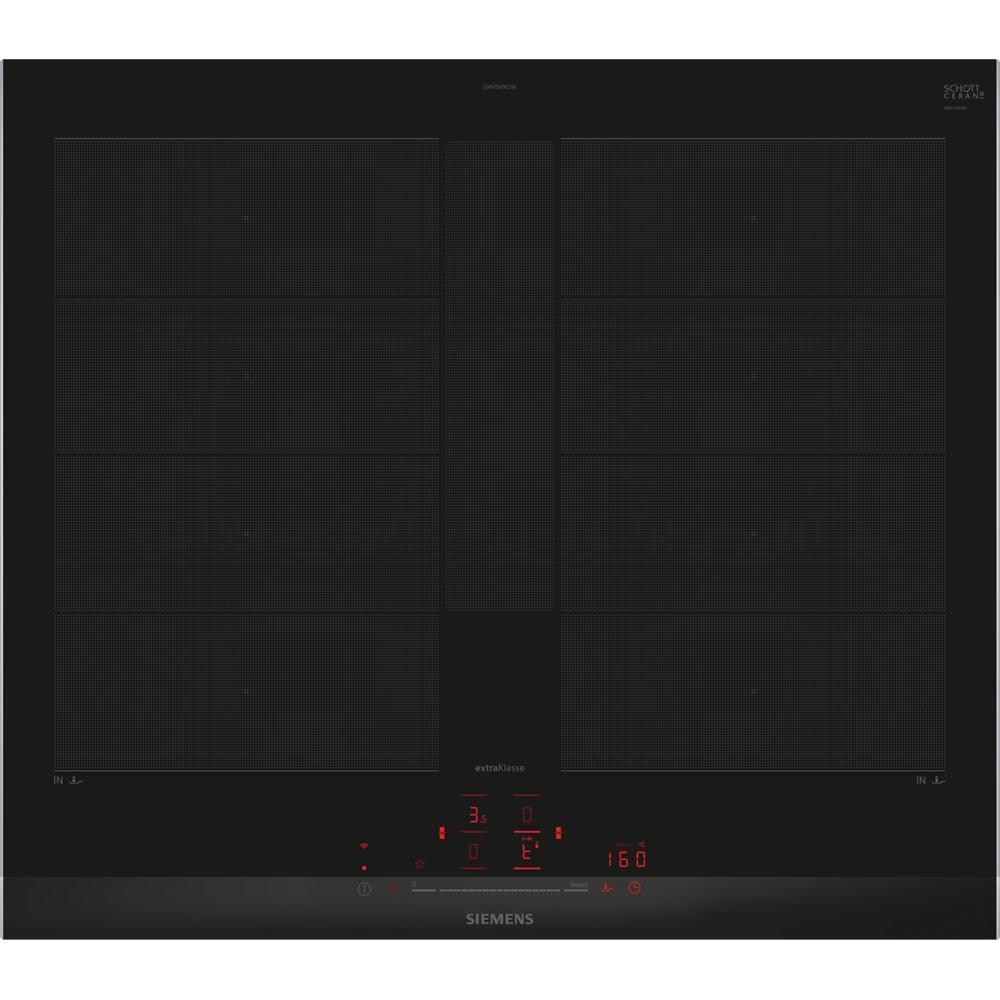 - Intelligente Dunstabzugsautomatik: Der Dunstabzug passt die Leistungsstufe automatisch an, da das Kochfeld kontinuierlich Kochdaten liefert (mit passendem Dunstabzug und verbundenem Home Connect-Konto).